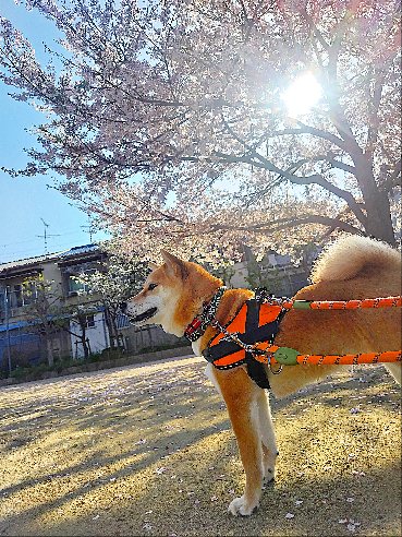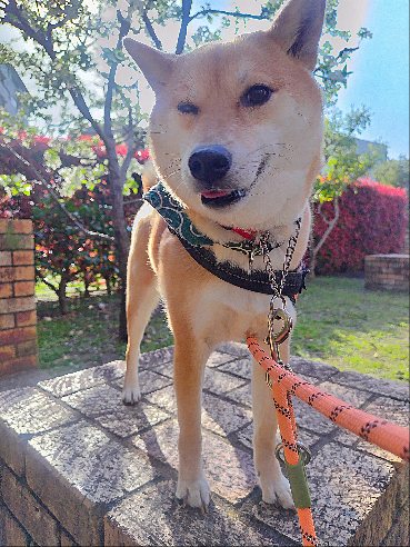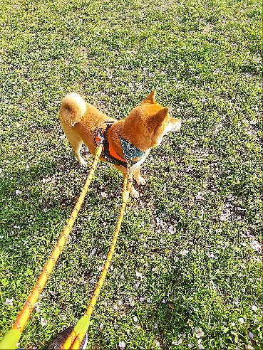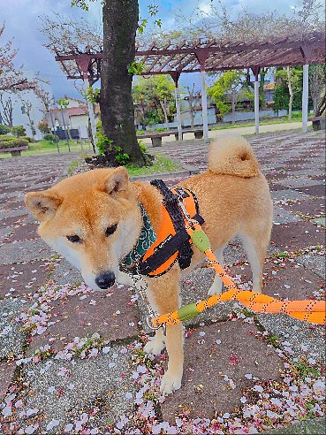 雨のやみ間でお仕事完了の柴犬まいちゃん。