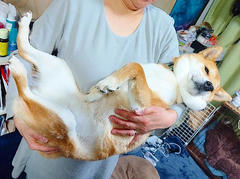 ママと2人がかり、オヤツの力も借りてやっと撮影出来る柴犬まいちゃん。