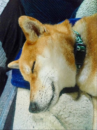 その頃には熟睡ちゅうの柴犬まいちゃん。