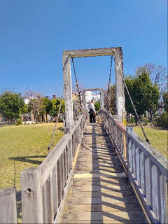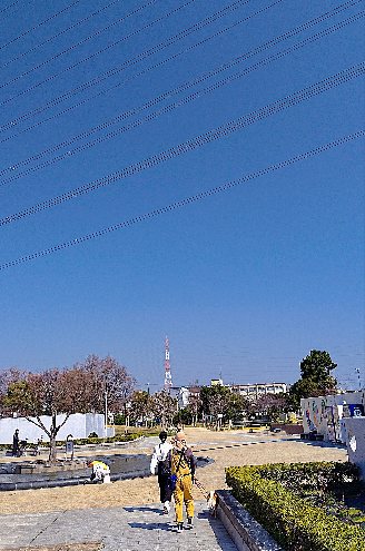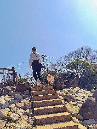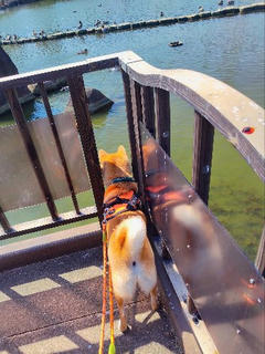 弁天池公園で吊り橋等を楽しむ柴犬さん