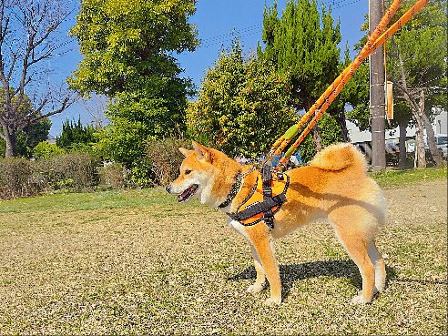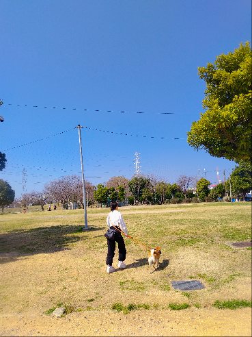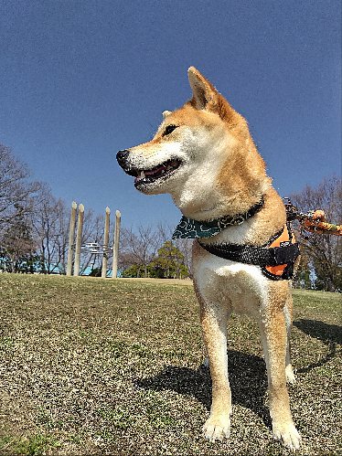 コレくらいの気温はお散歩にばっちりだワンの柴犬まいに