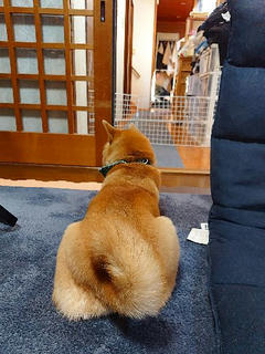ひたすら待つ柴犬さん。
