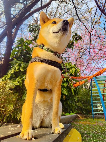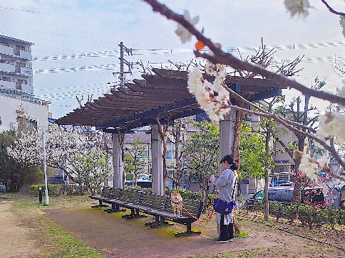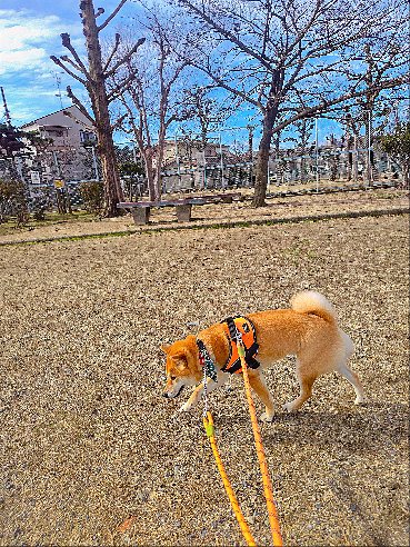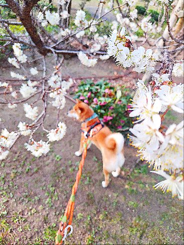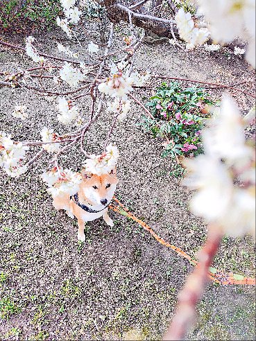 桜咲いてたら、写真写真って面倒くさいワンの柴犬まいに