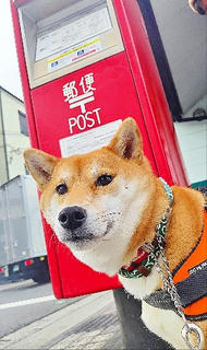 郵便局に入りたい柴犬さんです(笑)