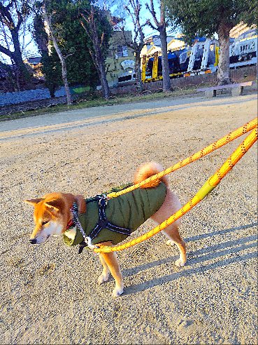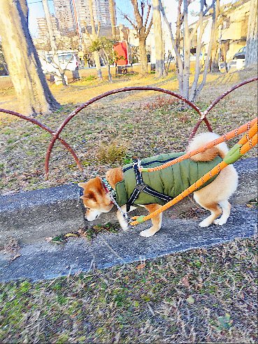 寒くても、お散歩は行かねばならないんだワンの柴犬まいに