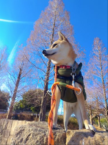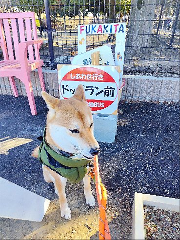 ドッグランで暴走する柴犬まいちゃんを捕まえるにはショートリード必須。
