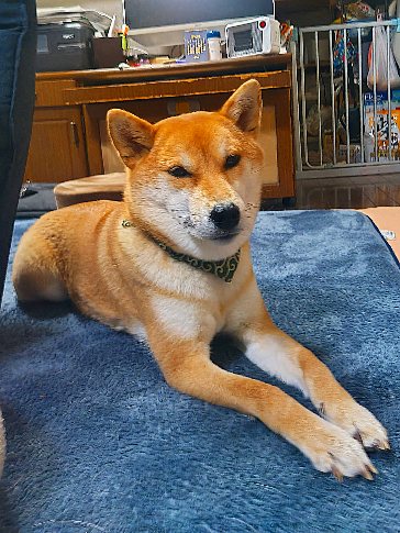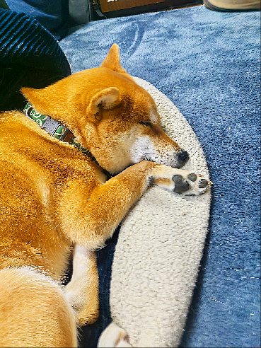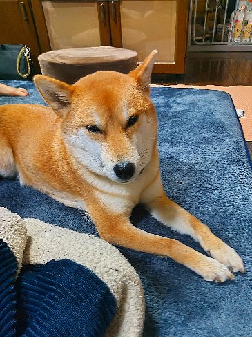 幸せそうな柴犬さん、これも日々のルーティーンですね。