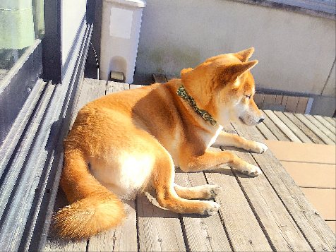 帰ってきたら、ウッドデッキで日光浴。