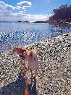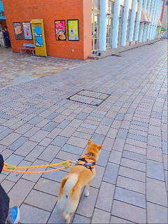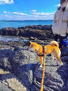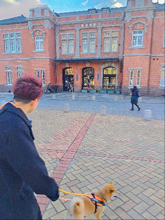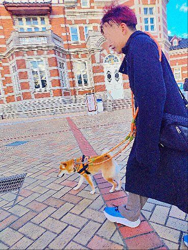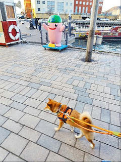 門司港レトロ、寒かったんだワンの柴犬まいに