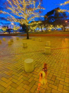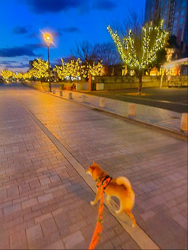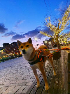 柴犬まいを車に迎えに行ってイルミ散歩です。