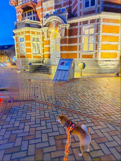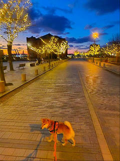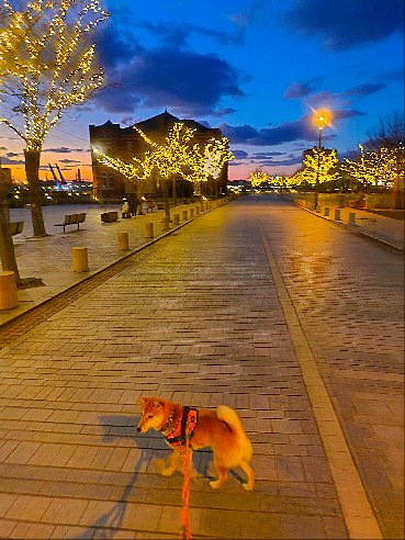 夕方の門司港レトロは寒かったワンの柴犬まいに