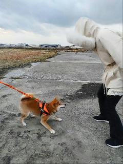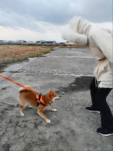 何時もより速いお散歩で寒かったワンの柴犬まいに
