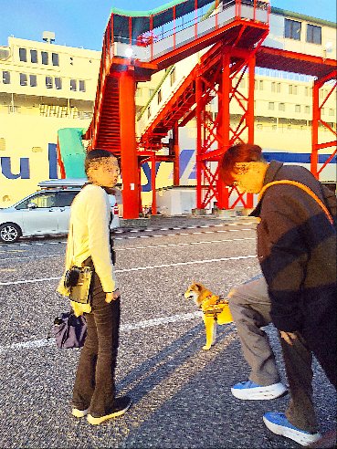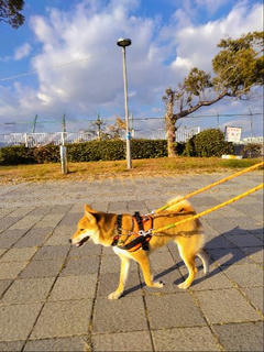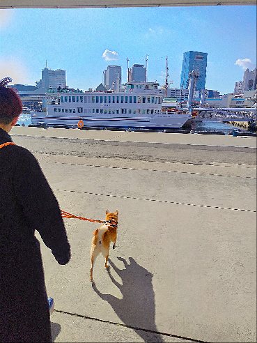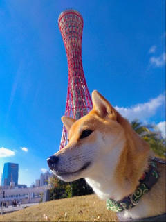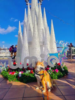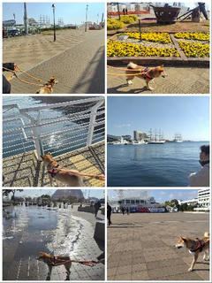 メリケンパークからモザイク散歩の柴犬さん