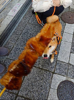 寒くてもしっかりお散歩、しっかりお仕事の柴犬さん。