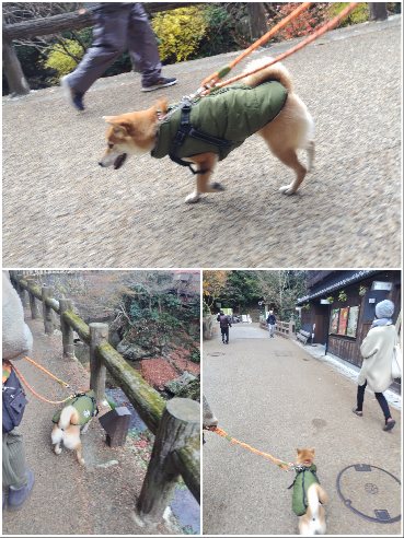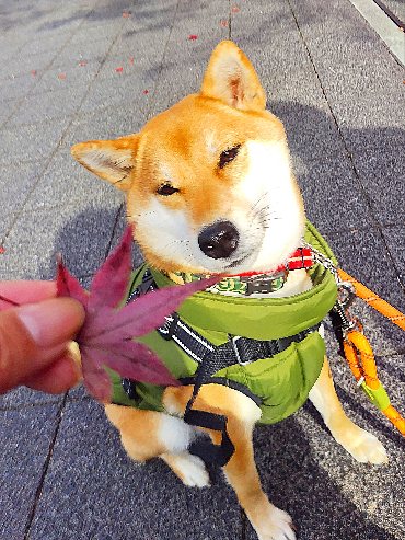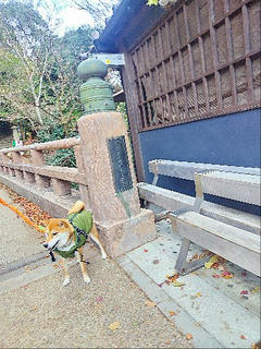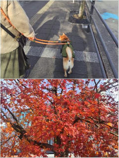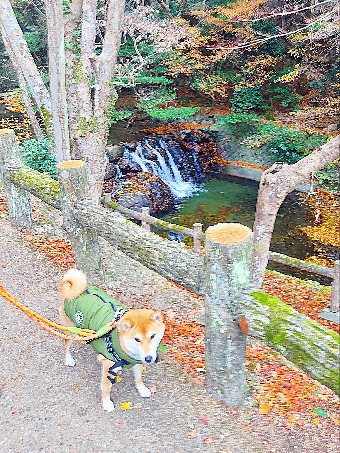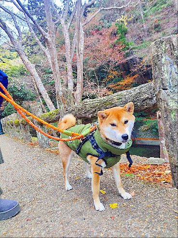 箕面散歩で残り紅葉満喫の柴犬さん!