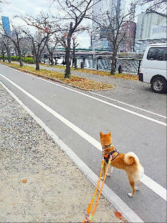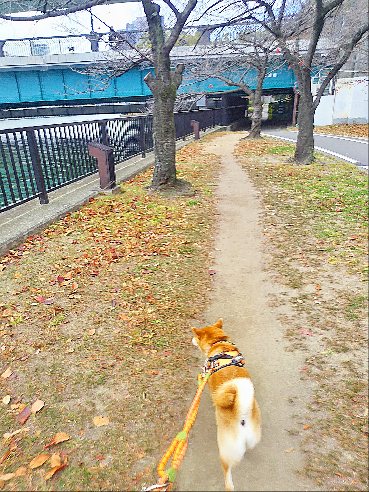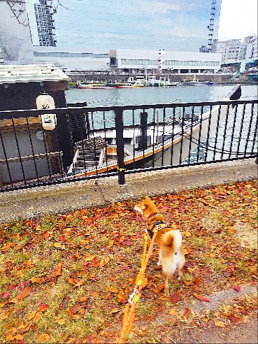 大きな橋の下をくぐったりと、柴犬さんはワクワク連発。