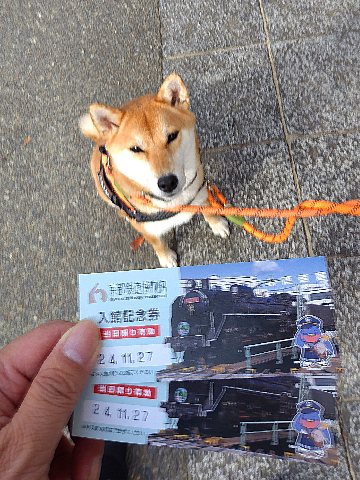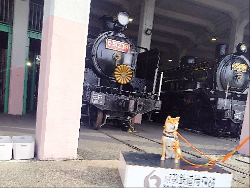 鉄道博物館をワクワク柴犬
