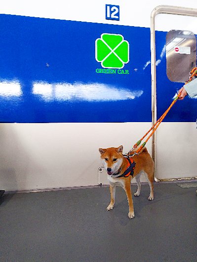 そのグリーン車のそばでふんぞり返る柴犬さん。