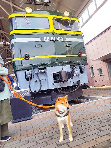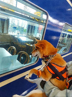 まさに寝台特急待つ柴犬さんって感じです。