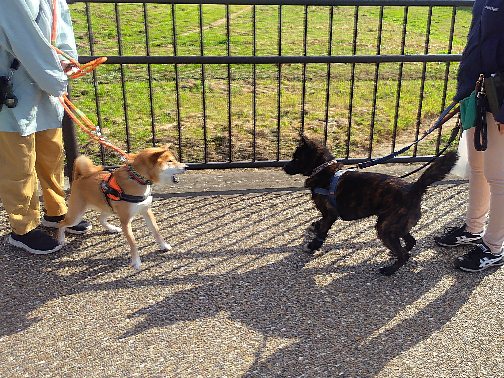 遊びたい若い子にガウガウで答える柴犬まいちゃん。