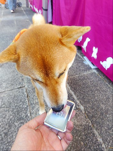 美味しいだらけのイベントだとわかっている柴犬さん。