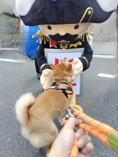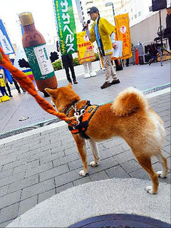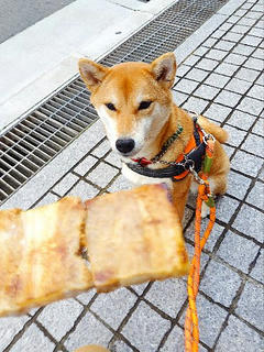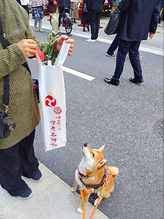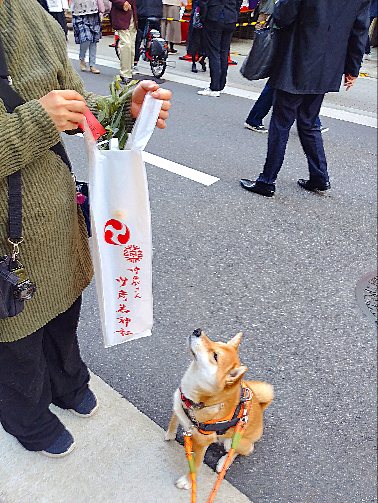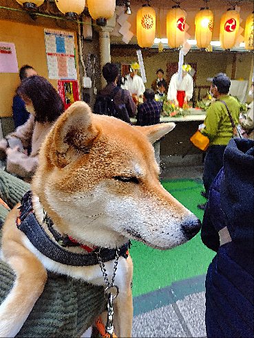 お店の中を練り歩いて、目的の店を発見の柴犬さん。