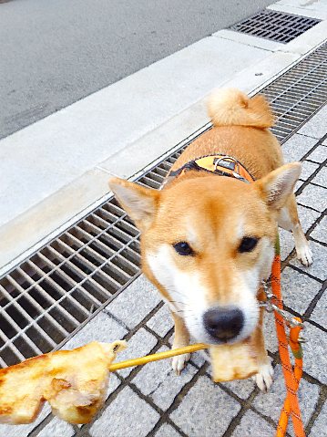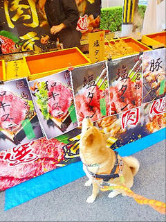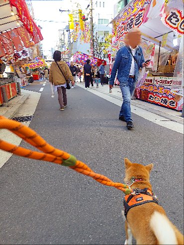 お祭りは良い匂いが沢山してワクワクするワンの柴犬まいに