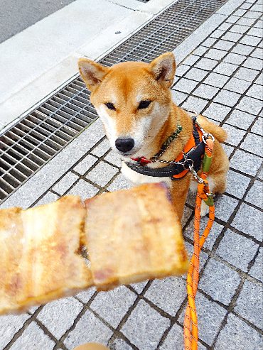美味しいもの食べたら、後は帰るだけなんだワンの柴犬まいに