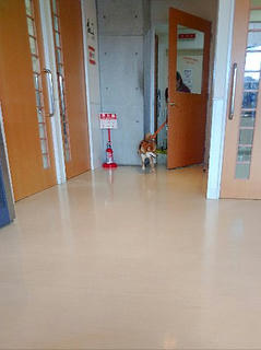 看護師さんに連れられて、予防接種に入って行った柴犬まいちゃん。