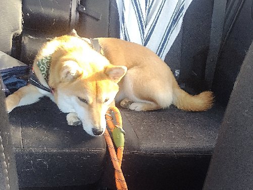 で、車に乗った柴犬さん。