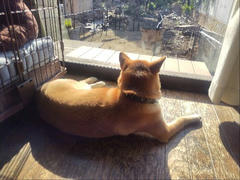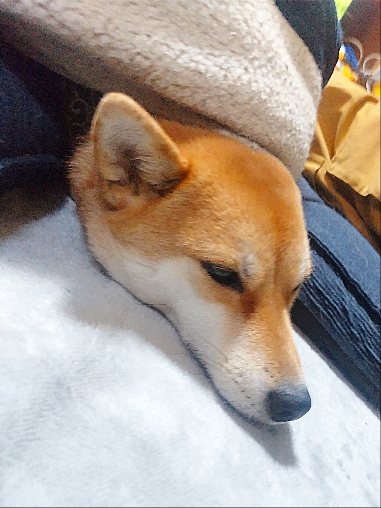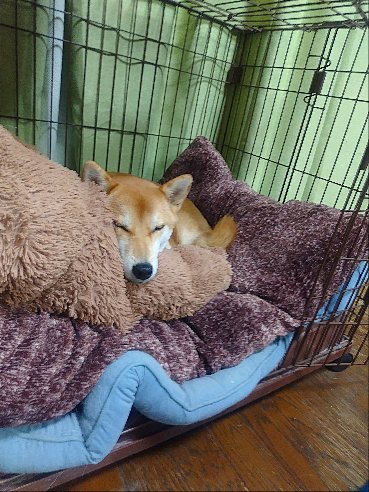 ケージに戻ってヌクヌクする柴犬さん。