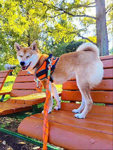 気持ち良くお散歩してドッグランで遊んで満足なんだワンの柴犬まいに