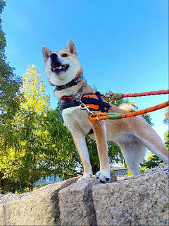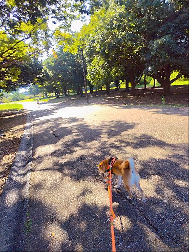 暑くないから、お散歩は快適なんだワンの柴犬まいに