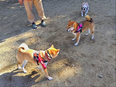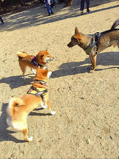 そんな中ガウガウまいちゃんは、柴犬さんとお戯れ。