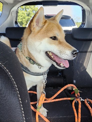 帰りの車に乗った柴犬さん。