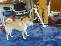 掃除機に挑む柴犬さん!