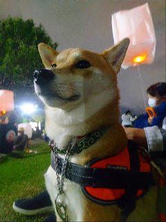 柴犬さんは不思議そうにランタンの明かりを眺めていました。