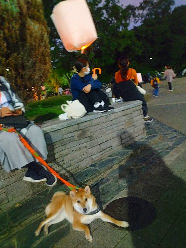 何かわかんないけど夜散歩は楽しかったワンの柴犬まいに