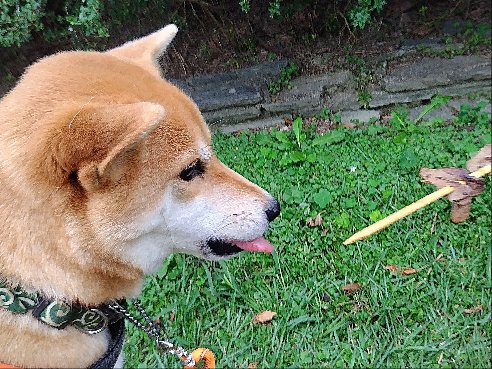 柴犬まいちゃん、興味津々。