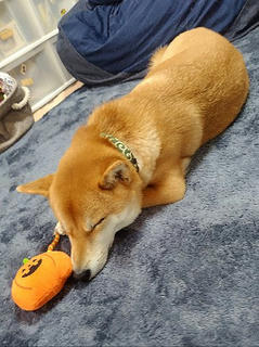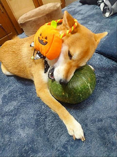 ハロウィンにカボチャバトルの柴犬さん