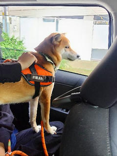 いつもと違う道を走る車に、すでにワクワクな柴犬まいちゃん。