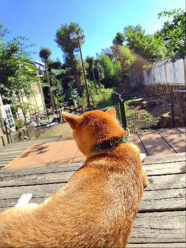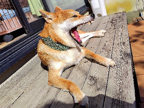 おひさまポカポカ、気持ち良いんだワンの柴犬まいに