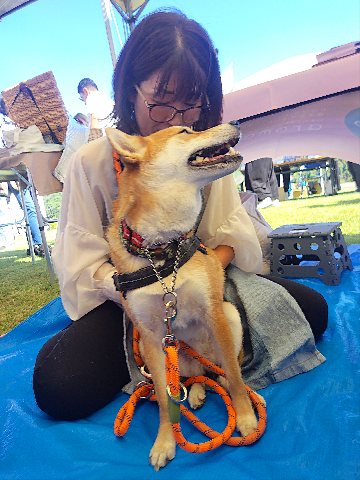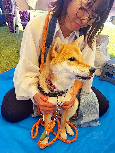 人とワンコが沢山で疲れたんだワンの柴犬まいに