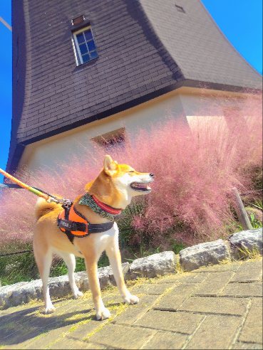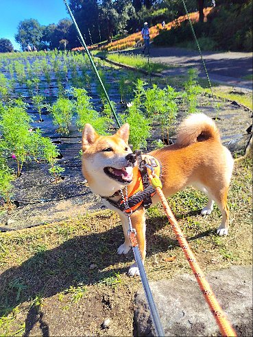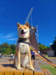 お天気が良くて気持ち良いんだワンの柴犬まいに